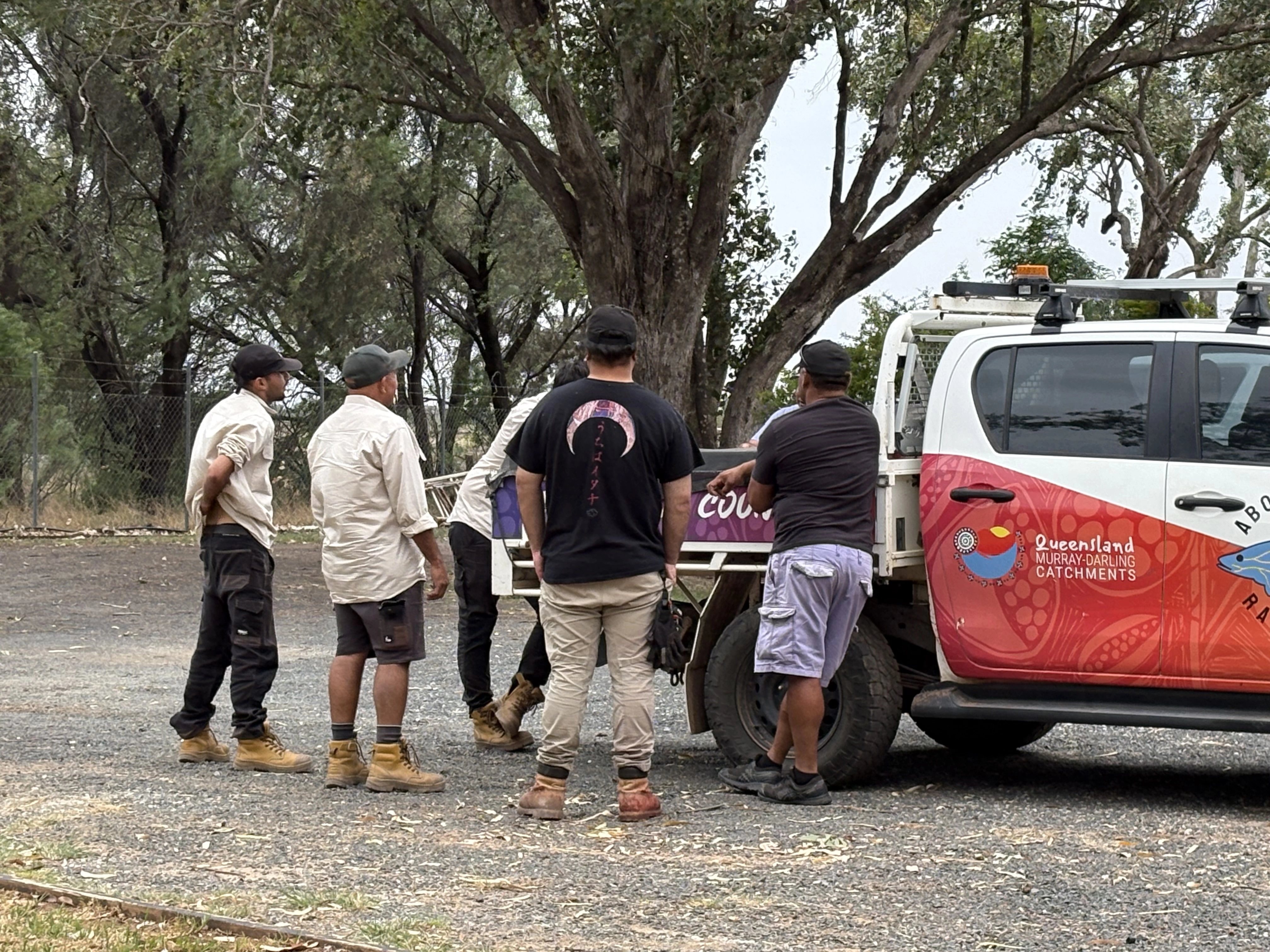 The trip included a barbecue at the St George Depot of the Queensland Murray–Darling Catchment (QMDC) Aboriginal Rangers. This provided an opportunity for the two ranger groups to connect and learn about each other’s work in their respective regions.